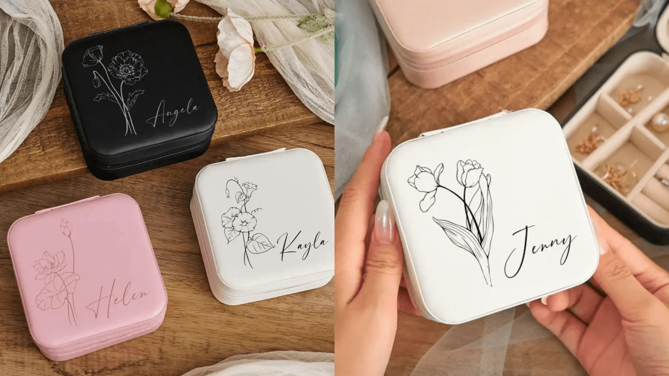 Alongside the custom necklace, a custom jewelry box is an essential personalized gift. Whether it's made from wood for a warm natural feel or features a vintage artistic touch, the custom jewelry box will elegantly store her precious jewelry.