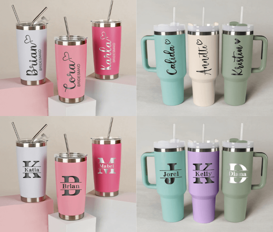 A stylish and practical gift for bridesmaids, groomsmen, the bride, and the groom. Personalize it with names or roles (bridesmaid, groomsman, etc.), perfect for sipping water during those pre-wedding moments.